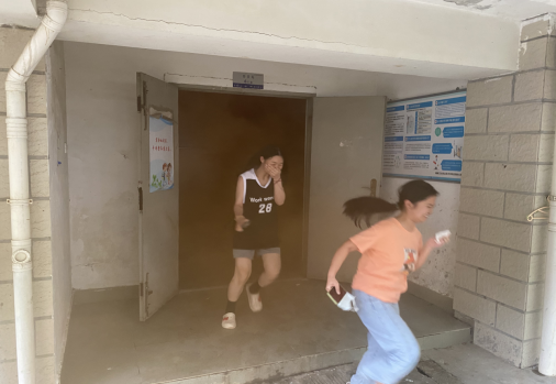 6月7日下午4:00時(shí),全體演練工作人員到位,學(xué)生進(jìn)入各自宿舍就位。為取得良好演練效果,我處工作人員點(diǎn)燃煙霧,模擬真實(shí)的地震火災(zāi)場(chǎng)景。演練開始,第一聲哨響,全體學(xué)生均意識(shí)到突發(fā)災(zāi)難來臨,立即在墻角及桌邊蹲在躲避,5秒后第二聲哨響,全體學(xué)生捂住口鼻,按照逃生路線有序的、迅速的逃離宿舍并撤離到安全區(qū)域。本次演練總共用時(shí)1分49秒,達(dá)到演練預(yù)期效果。