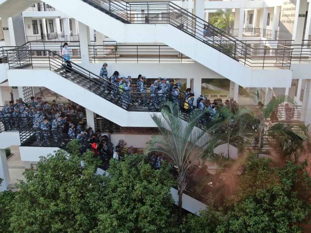 為強化我院2023級新生安全防范意識,提升面對火災(zāi)、地震等突發(fā)災(zāi)害事故時的應(yīng)急處置和自救互救能力,安全工作處于2023年9月24日組織2023級全體新生開展教學(xué)樓消防、地震逃生演練,分三個場次進(jìn)行。