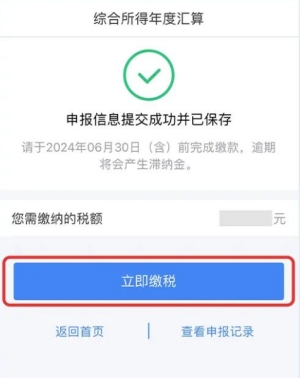 系統(tǒng)跳轉(zhuǎn)至繳稅頁(yè)面,點(diǎn)擊“立即繳稅”。