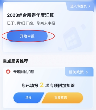 (一)打開(kāi)并登陸“個(gè)人所得稅”APP,在“2023綜合所得年度匯算”下點(diǎn)擊“開(kāi)始申報(bào)”