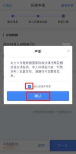 (七)以上所有數(shù)據(jù)確認(rèn)無誤后,點(diǎn)“下一步”,完成稅款計(jì)算,可查看退稅金額,點(diǎn)擊“提交申報(bào)”,系統(tǒng)彈跳出聲明窗口,勾選“我已閱讀并同意”