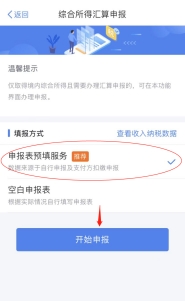 (三)選擇填報(bào)方式,建議選擇“申報(bào)表預(yù)填服務(wù)”→“開始申報(bào)”,可快速進(jìn)行申報(bào)。