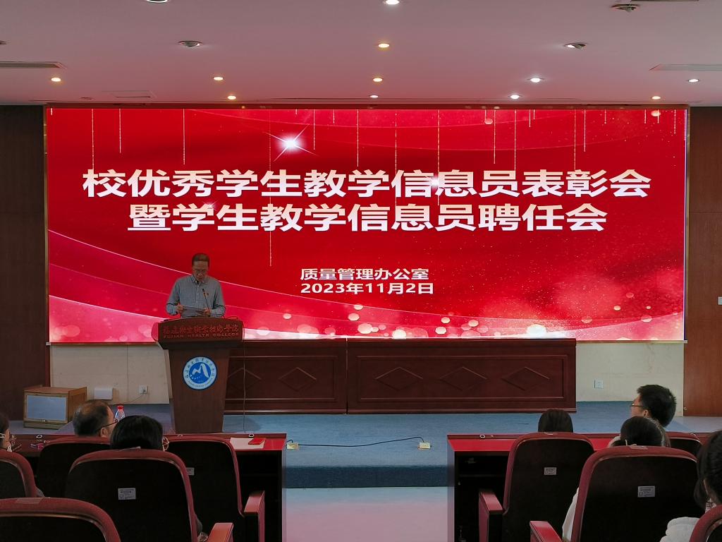 為表彰校優(yōu)秀學(xué)生教學(xué)信息員,同時聘任新一屆學(xué)生教學(xué)信息員,以推動學(xué)校教學(xué)質(zhì)量的提升,2023年11月2日下午,質(zhì)量管理辦公室在實訓(xùn)樓四樓會議室舉行校優(yōu)秀學(xué)生教學(xué)信息員表彰會暨學(xué)生教學(xué)信息員聘任會。質(zhì)量管理辦公室、各院(系)副主任以及全體學(xué)生教學(xué)信息員參加。