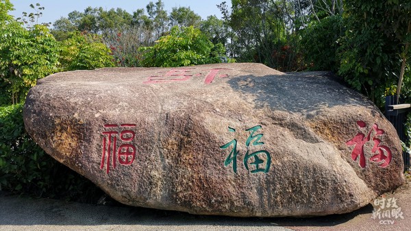 △祈福臺的巨石上篆刻有歷代書法家的“?!弊?。(總臺央視記者魏建拍攝)