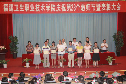 下午,慶祝第28個教師節(jié)表彰大會召開,由廖偉堅副院長主持,陳雄副書記宣讀了學(xué)院黨委《福建衛(wèi)生職業(yè)技術(shù)學(xué)院關(guān)于表彰第二屆師德標(biāo)兵的決定》、《關(guān)于頒發(fā)長期從事教育工作的教師與教育工作者榮譽證書的通知》以及《受院級以上表彰的先進(jìn)集體與個人名單》,李紅副院長宣讀了《福建衛(wèi)生職業(yè)技術(shù)學(xué)院關(guān)于表彰2012年青年教師教學(xué)競賽獲獎集體與個人的決定》,院領(lǐng)導(dǎo)為獲得榮譽和表彰的集體和個人代表頒發(fā)了榮譽證書。