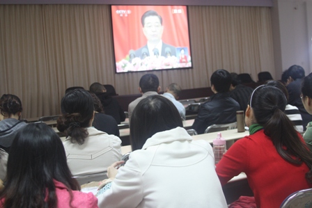 11月8日上午9點(diǎn),萬眾矚目的中國共產(chǎn)黨第十八次全國代表大會開幕式在北京人民大會堂隆重舉行。我院在行政樓六層會議室組織集中收看現(xiàn)場直播,院黨委副書記、院長林春明等多位在家院領(lǐng)導(dǎo)和70余位行政管理人員專心致志地聆聽了胡錦濤總書記的報(bào)告。