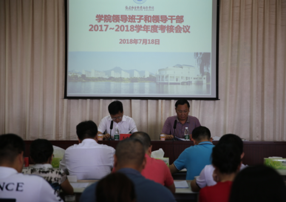 根據(jù)省教育廳黨組的統(tǒng)一部署和要求,7月18日下午,我院在行政樓六樓第三會議室召開院領(lǐng)導(dǎo)班子和領(lǐng)導(dǎo)干部2017-2018學(xué)年度考核會議。省委教育工委副書記、省教育廳黨組成員王建南,省教育廳(省委教育工委)組織處副處長鄭邦華,省教育廳職業(yè)教育與成人教育處主任科員程征,省教育廳人事處主任科員許四清對我院領(lǐng)導(dǎo)班子和領(lǐng)導(dǎo)干部進行考核。學(xué)院領(lǐng)導(dǎo)班子成員、中層干部及高級職稱專業(yè)技術(shù)人員等共96位同志參加會議,會議由學(xué)院黨委書記曾武祈主持。