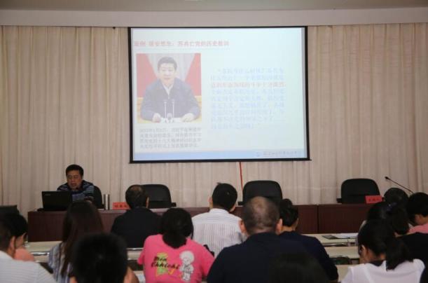 6月14日下午,院黨委林春明書記在行政樓六樓會議室舉辦題為《堅持“三個導向” 提高學習成效》的“兩學一做”學習教育專題黨課,院直機關(guān)全體黨員參加了林書記的專題黨課。