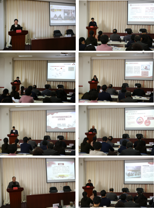 會上,八位黨總支(直屬黨支部)書記就學習貫徹習近平新時代中國特色社會主義思想情況、落實基層黨建重點任務(wù)情況、集中開展軟弱渙散基層黨組織專項整治情況、新時代高校黨建示范創(chuàng)建和質(zhì)量創(chuàng)優(yōu)工作情況、問題整改情況和履行基層黨建工作責任情況等方面,逐一現(xiàn)場述職。離退休黨總支提交書面述職報告,不參與現(xiàn)場述職。述職結(jié)束后,與會人員對述職情況進行了評議投票。