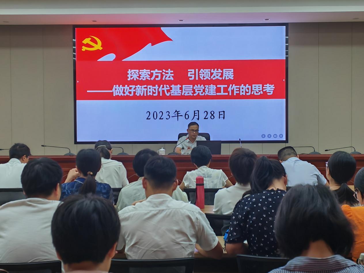 錢從明老師以《探索方法 引領(lǐng)發(fā)展——做好新時代基層黨建工作的思考》為題,從發(fā)展黨員工作中常見問題與困惑、如何總結(jié)凝練基層黨建工作經(jīng)驗(yàn)和做好新時代黨建工作的實(shí)踐思考三個方面對黨建工作進(jìn)行了全面的梳理和指導(dǎo)。他結(jié)合發(fā)展黨員專項(xiàng)檢查中遇到的問題、黨建項(xiàng)目申報(bào)優(yōu)秀案例等為例,對黨建工作實(shí)務(wù)進(jìn)行了詳細(xì)的講解,并從“勤學(xué)習(xí)、重思考、善作為、求創(chuàng)新”四個角度對黨務(wù)干部做好新時代基層黨建工作提供了建議。最后,與會黨務(wù)干部針對黨建雙創(chuàng)、支部立項(xiàng)、發(fā)展黨員等工作中遇到的實(shí)際問題與錢老師開展了現(xiàn)場交流。