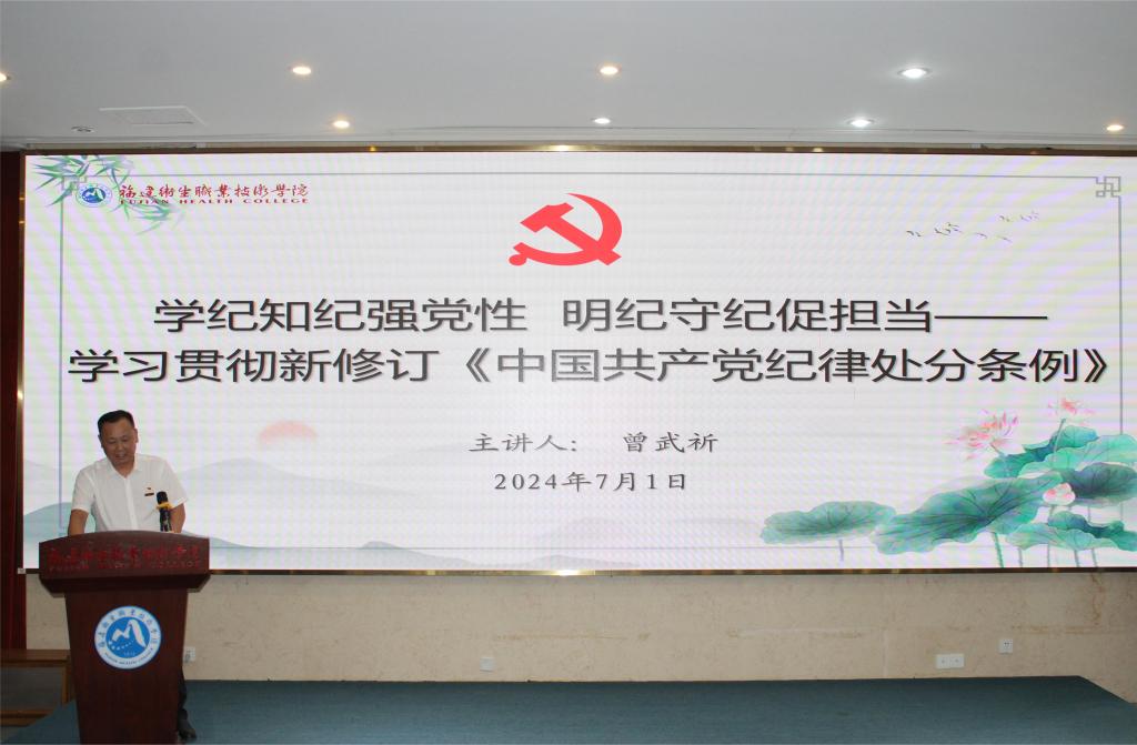 會(huì)前,黨委書記曾武祈作《學(xué)紀(jì)知紀(jì)強(qiáng)黨性明紀(jì)守紀(jì)促擔(dān)當(dāng)》為題的黨紀(jì)學(xué)習(xí)教育專題黨課。