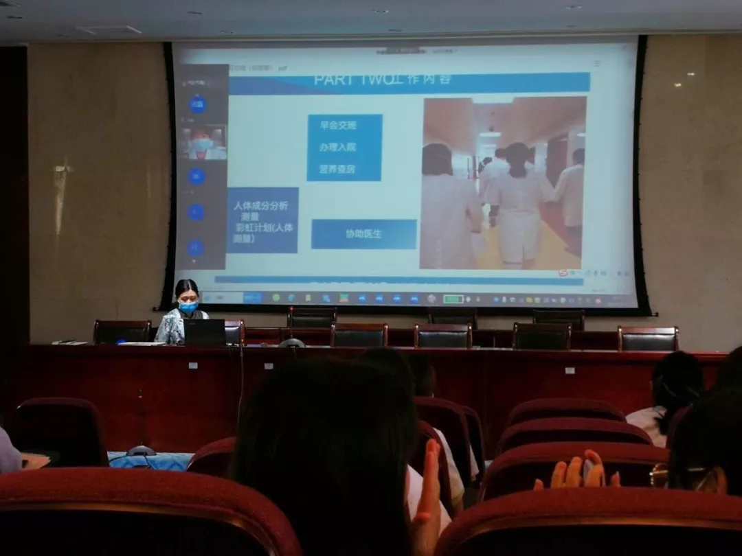 為切實(shí)保障疫情防控期間學(xué)生實(shí)習(xí)工作的順利進(jìn)行,福建衛(wèi)生職業(yè)技術(shù)學(xué)院健康管理系醫(yī)學(xué)營養(yǎng)專業(yè)于2020年6月12日開展了“云”實(shí)習(xí)經(jīng)驗(yàn)交流會。7位2017級醫(yī)學(xué)營養(yǎng)專業(yè)畢業(yè)生在交流會上分享了自己的所在實(shí)習(xí)點(diǎn)的情況,并解答了同學(xué)們的相關(guān)提問。健康管理系醫(yī)學(xué)營養(yǎng)教研室徐軼彥老師、吳晶老師、王國浩老師以及2018級醫(yī)學(xué)營養(yǎng)專業(yè)全體學(xué)生參與了本次交流會。