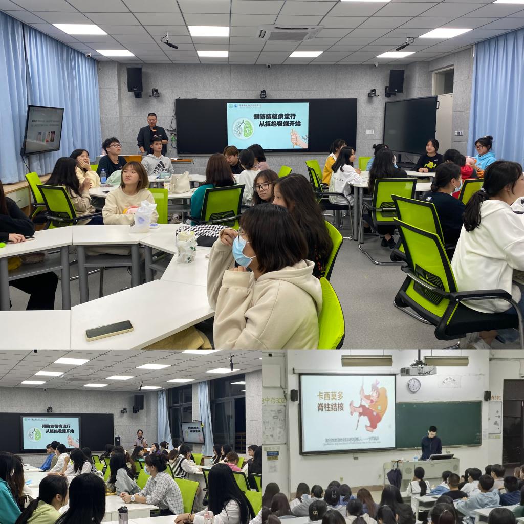 主題班會10月31日,為了增強學生預防結核病及控煙的意識,結核病防治志愿服務隊邀請輔導員們開展了“預防結核流行,從拒絕吸煙開始”主題班會活動。主題班會首先由輔導員向班上同學科普結核病及控煙相關知識,科普過程中輔導員采取了問題搶答、知識競答、小組討論等形式增加了同學的參與性及互動性,從而提高健康科普傳播效果。活動期間,同學們積極踴躍,熱情高漲,在輔導員的帶領下,加深了對結核病的認識,充分認識到吸煙的危害,進一步增強了健康生活意識,達到了很好的宣傳效果。