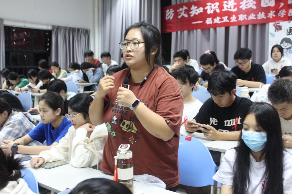 本次講座邀請了福建省疾病預(yù)防控制中心艾滋病性病防治副主任醫(yī)師、福建省醫(yī)學(xué)會健康科普講師、中國性病艾滋病防治協(xié)會預(yù)防干預(yù)專業(yè)委員會委員潘蘊(yùn)蛟主任擔(dān)任主講嘉賓。潘蘊(yùn)蛟主任從2005年起潘主任就開始從事艾滋病防治工作,具有豐富的相關(guān)工作經(jīng)驗(yàn)。潘主任用通俗易懂的講解方式,為同學(xué)們揭開了艾滋病的神秘面紗,從艾滋病的傳播途徑、預(yù)防措施,到如何正確面對和關(guān)愛艾滋病患者,為大家進(jìn)行了詳細(xì)闡述。