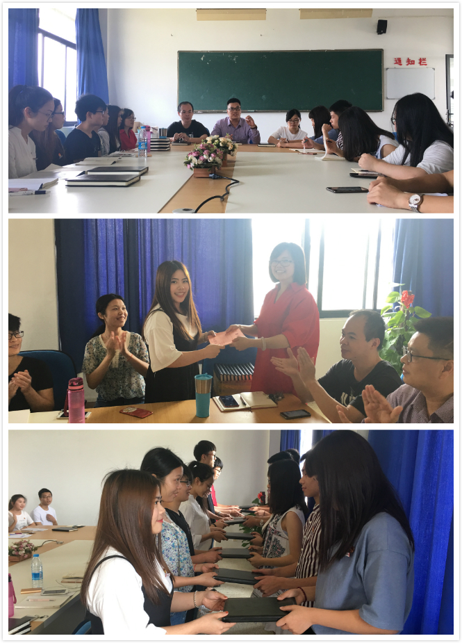 交流會上,艾松軍副書記向15級團學干部一年以來的工作表示充分的肯定和衷心的感謝,并指出作為兩委會的學生干部要有意識地培養(yǎng)創(chuàng)新思維能力;要學會做事,從點滴做起,在做的過程中注重培養(yǎng)團結協(xié)作能力;要學會做人,這是我們的立身之本,更是生存之道。他強調(diào)新老干部交流會是一次全新的開始,希望新老團學干部可以多交流,相互促進。最后,邱麟老師向2015級團學干部代表授聘書,同時2016級新一屆團學干部向2015級前輩送上了自己的一份心意。