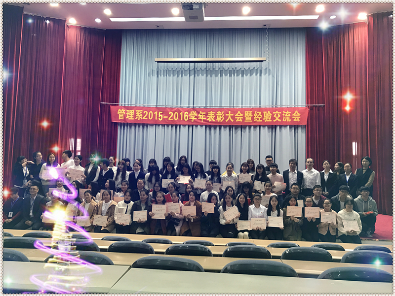 大會在莊嚴(yán)的國歌中拉開帷幕。首先,由管理系團(tuán)總支副書記馮瑞華宣讀了“關(guān)于管理系表彰2015-2016學(xué)年先進(jìn)集體和先進(jìn)個人的決定”,希望受表彰的同學(xué)珍惜榮譽(yù),戒驕戒躁。在頒獎儀式上,領(lǐng)導(dǎo)老師為受表彰的先進(jìn)集體和個人頒發(fā)了榮譽(yù)證書并希望同學(xué)們不斷進(jìn)取,努力成為一名優(yōu)秀的醫(yī)藥衛(wèi)生人才。一等獎學(xué)金獲得者15美容301班劉芹,優(yōu)秀學(xué)生干部及二等獎學(xué)金獲得者15營養(yǎng)301班羅鴻,三好生及特等獎學(xué)金獲得者15體保301班郭春燕分別作為學(xué)生代表,分享獲獎感言和個人學(xué)習(xí)經(jīng)驗(yàn)。預(yù)防醫(yī)學(xué)組李丹老師作為教師代表分享作為一名人民教師的驕傲和自豪,表示獲得表彰不僅是給同學(xué)們的一種肯定和鼓勵,更是對教師的一種認(rèn)可和鞭策。學(xué)生工作處葉海處長號召同學(xué)們響應(yīng)健康中國發(fā)展趨勢,明確學(xué)習(xí)目標(biāo),努力提升自身綜合素質(zhì);并期望同學(xué)們做一個積極向上的人,勤奮好學(xué)的人,全面發(fā)展的人。管理系莊海林副主任對同學(xué)們?nèi)〉玫膬?yōu)異成績表示祝賀,同時希望同學(xué)們在健康中國的創(chuàng)新創(chuàng)業(yè)浪潮中把握機(jī)遇迎接挑戰(zhàn),在步入社會之前不僅先學(xué)會學(xué)習(xí),更要學(xué)會做人,這樣才能為將來就業(yè)做好堅(jiān)實(shí)的基礎(chǔ)保障。