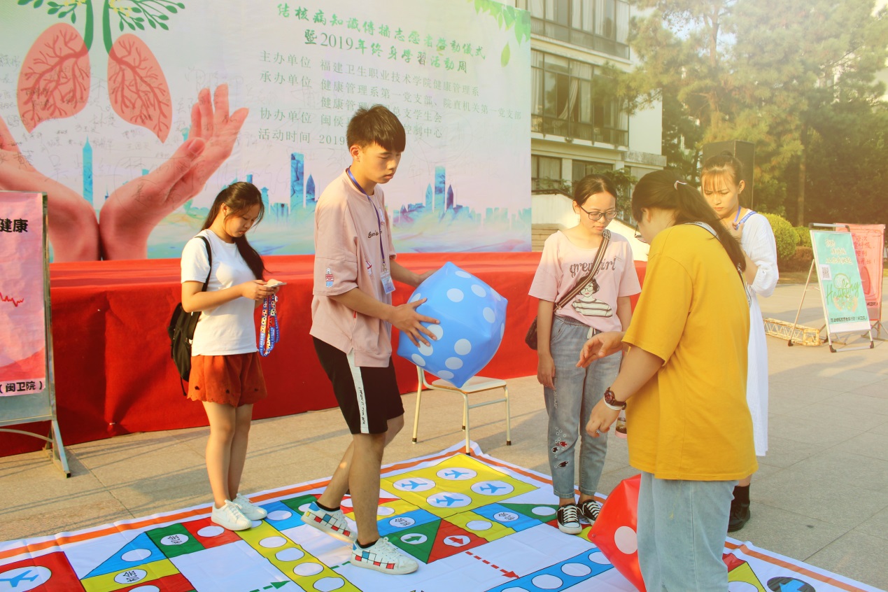 2019年9月25日,由健康管理系主辦,管理系第一黨支部、院直機(jī)關(guān)第一黨支部、健康管理系團(tuán)總支承辦的“志愿者結(jié)核病防治知識(shí)傳播啟動(dòng)儀式暨2019年終身學(xué)習(xí)活動(dòng)周”在福建衛(wèi)生職業(yè)技術(shù)學(xué)院圖書(shū)館廣場(chǎng)舉行。此次活動(dòng)是根據(jù)福建省終身教育促進(jìn)委員會(huì)關(guān)于開(kāi)展2019年“9?28終身教育活動(dòng)日”暨全民終身學(xué)習(xí)活動(dòng)周的通知精神并響應(yīng)福建省衛(wèi)生計(jì)生委推動(dòng)結(jié)核病防治知識(shí)傳播活動(dòng)的號(hào)召,在學(xué)校組建結(jié)核病防治宣傳活動(dòng)志愿團(tuán)隊(duì),發(fā)揮學(xué)生專業(yè)技能,推進(jìn)健康中國(guó)建設(shè),大力提高國(guó)民素質(zhì),并提高學(xué)生為人群健康服務(wù)的意識(shí)和決心?;顒?dòng)得到了閩侯縣CDC的大力支持,閩侯縣疾控中心江仁銜主任、福建省疾病預(yù)防控制中心黃智忠副主任醫(yī)師、院團(tuán)委黃曦書(shū)記、健康管理系黨政負(fù)責(zé)人等參加活動(dòng)。
