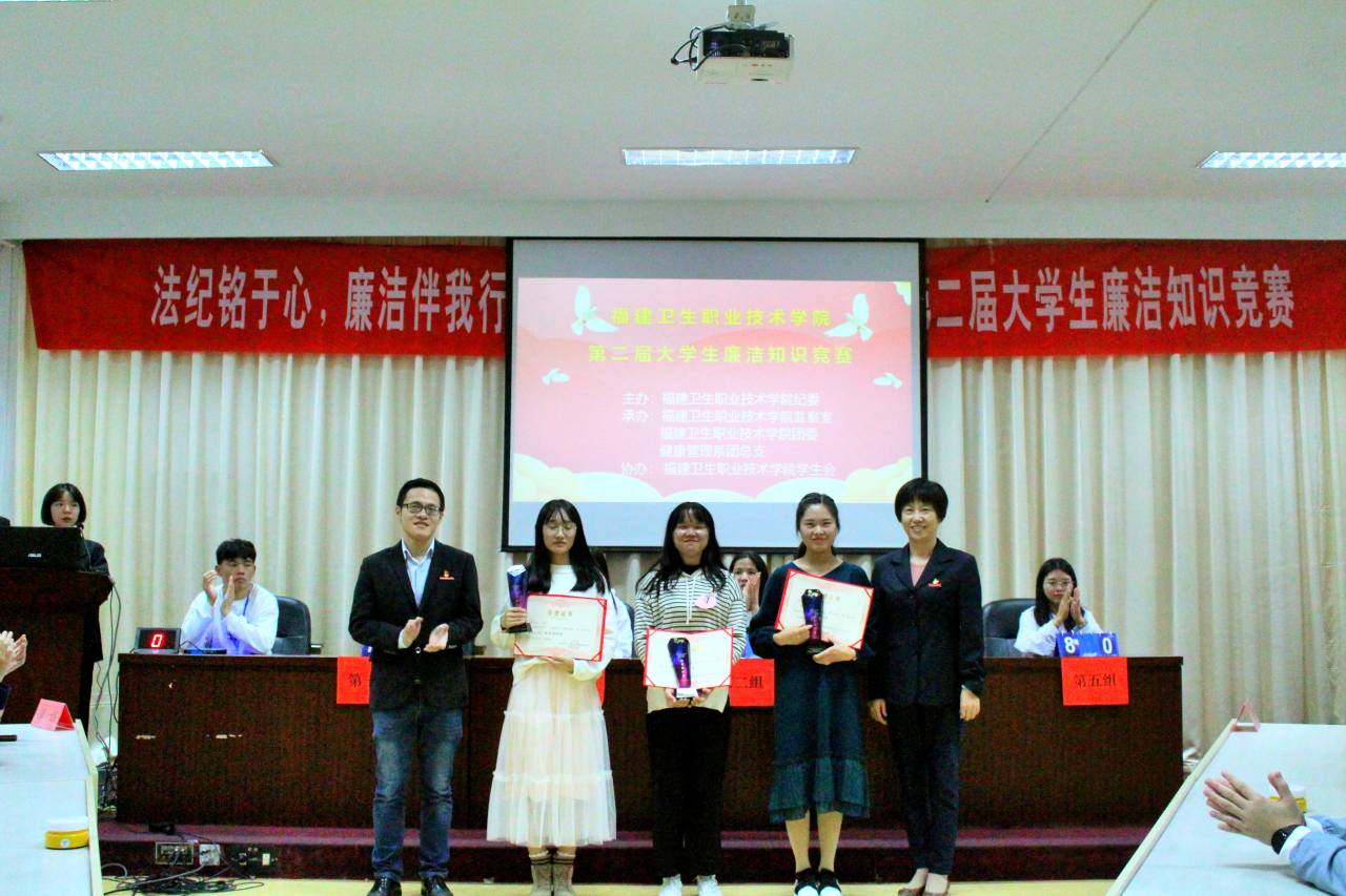 為深入弘揚廉潔文化,普及廉潔知識,永葆廉潔自律之心,揚青年正氣,樹廉潔新風(fēng)。在12月9日“國際反腐敗日”來臨之際,由學(xué)院紀(jì)委、團委主辦、健康管理系團總支承辦的第二屆大學(xué)生廉潔知識競賽于11月28日下午6:30在行政樓六樓會議室舉行。比賽特邀學(xué)院紀(jì)委副書記、紀(jì)檢監(jiān)察室主任程劍芬老師、院團委書記黃曦老師、紀(jì)檢監(jiān)察室楊金城老師擔(dān)任評委及指導(dǎo)。蒞臨活動現(xiàn)場的還有:護理系團總支書記李寶珠老師、團總支副書記林飛準(zhǔn)老師、團總支副書記張龍老師、藥學(xué)系團總支副書記胡丹老師、醫(yī)學(xué)技術(shù)系團總支書記曾慶才老師、臨床醫(yī)學(xué)系團總支書記陳清清老師、健康管理系團總支書記馮瑞華老師、健康管理系團總支副書記趙茜老師。