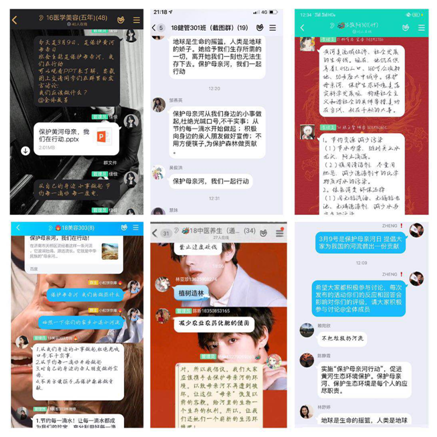 此次主題活動(dòng)各班團(tuán)支部通過PPT講解、知識(shí)宣傳、班級(jí)討論等形式以微信群、QQ群等為載體進(jìn)行宣講,并結(jié)合自身專業(yè)實(shí)際情況,組織各團(tuán)支部成員積極學(xué)習(xí)討論。各班同學(xué)積極發(fā)言,很多同學(xué)都表示自己家鄉(xiāng)的河流變得更加清澈了,環(huán)境更加美好了,空氣更加新鮮了……,“綠水青山就是金山銀山”的理念在人們心中更加深刻了。同時(shí),各班學(xué)生以觀看有關(guān)保護(hù)母親河的新聞、視頻來開展怎么保護(hù)我們的母親河以及自己能為保護(hù)母親河做些什么,利用線上多種多樣的形式活動(dòng)來增強(qiáng)學(xué)生保護(hù)河流環(huán)境的意識(shí)。