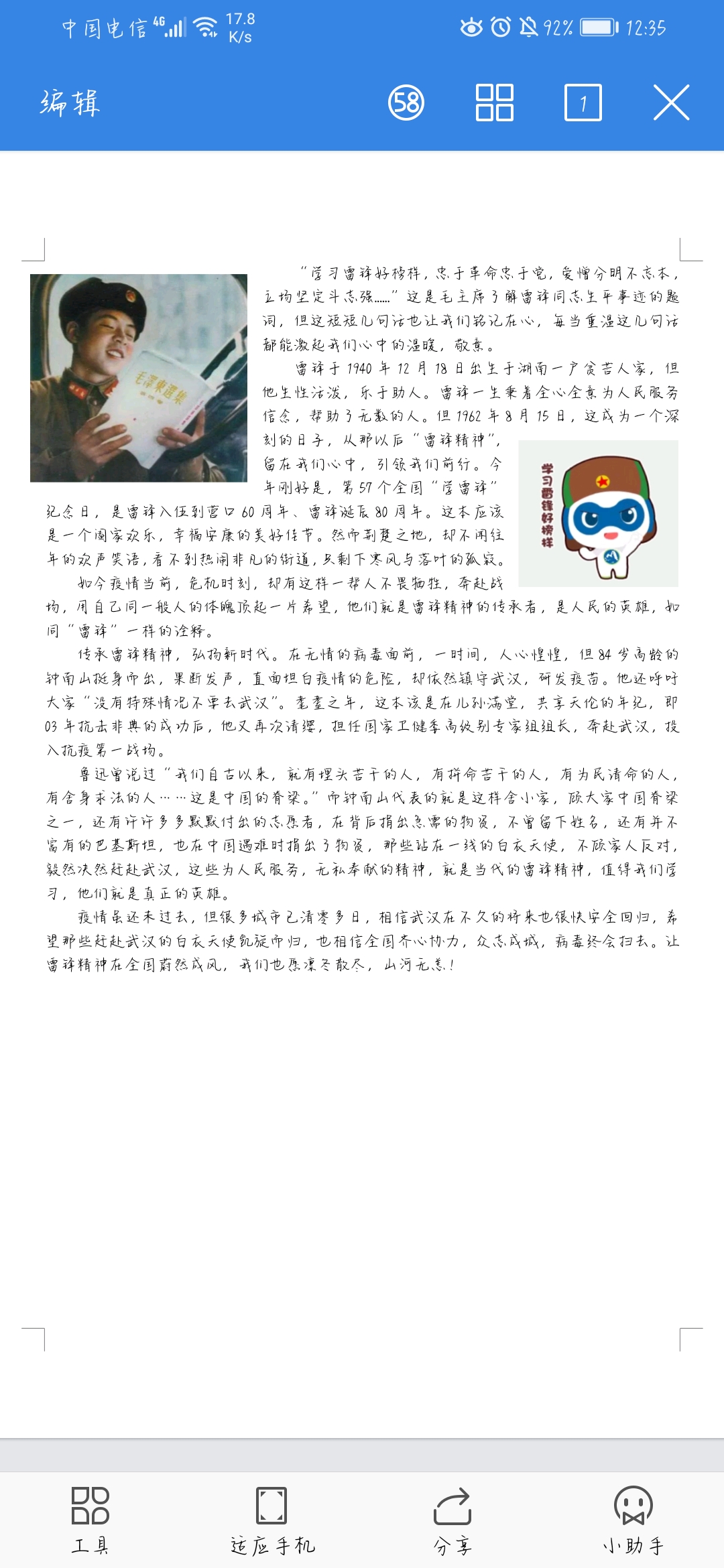 通過(guò)此次線上征文比賽使同學(xué)們認(rèn)識(shí)到抗擊疫情需要全社會(huì)的共同參與,雷鋒精神是中國(guó)精神的突出代表,面對(duì)突然而來(lái)的疫情,作為一名大學(xué)生,我們將傳承雷鋒精神,凝聚起全面抗擊疫情的重要力量,奏響抗疫最強(qiáng)音!