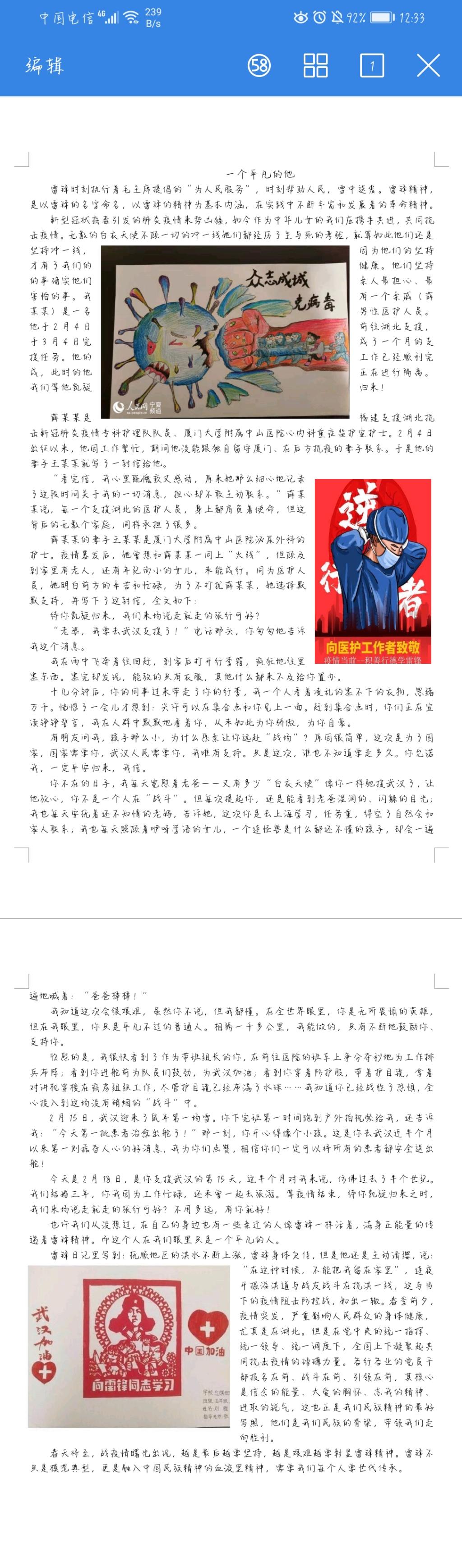 18、19級(jí)各班同學(xué)的積極參與此次比賽,系易班站收到廣泛來(lái)稿,作品盡數(shù)體現(xiàn)了同學(xué)們以個(gè)人獨(dú)特視角對(duì)這場(chǎng)疫情阻擊戰(zhàn)的所聞所見(jiàn)所感,也體現(xiàn)了同學(xué)們?cè)敢庳暙I(xiàn)自己一份力量的決心。在大家的作品中我們發(fā)現(xiàn)了一些特殊人群的縮影:為抗疫甘當(dāng)志愿的青年戰(zhàn)士、為抗疫投筆宣傳防疫知識(shí)的文人墨士,他們用自己的實(shí)際行動(dòng)寄托他們對(duì)祖國(guó)的美好的祝愿。在災(zāi)難面前,他們都是大美之人,都是敢于為國(guó)家奉獻(xiàn)的人,他們是最可愛(ài)的人。我們這個(gè)充滿愛(ài)與力量的國(guó)家,在戰(zhàn)“疫”面前,大家精誠(chéng)團(tuán)結(jié),萬(wàn)眾一心共克時(shí)艱。