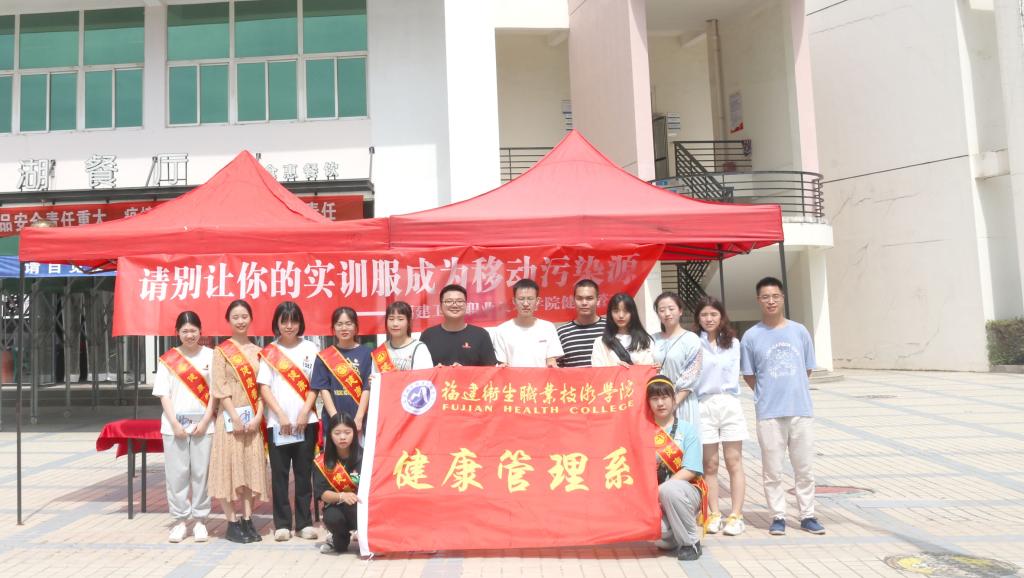 醫(yī)護(hù)人員的實(shí)訓(xùn)服是職業(yè)的象征,代表著生命的尊嚴(yán)和醫(yī)學(xué)的圣潔,是醫(yī)學(xué)職業(yè)倫理教育的良好載體,它具有切斷傳播途徑作用,也是防止交叉感染重要屏障,但是如果不正確處理,可能會成為危害人體的來源。2020年10月5日健康管理系第一黨支部聯(lián)合系團(tuán)總支開展以“請別讓你的實(shí)訓(xùn)服成為移動污染源”為主題的衛(wèi)生安全宣傳教育活動,學(xué)院黨委委員、副院長陳貞健指導(dǎo)并參加此次活動。