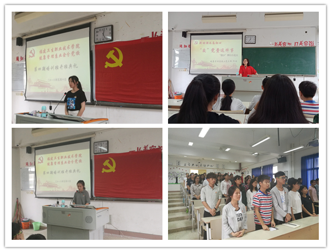 開班儀式在雄壯的《國歌》中拉開帷幕,邱麟老師對(duì)全體學(xué)員提出了培訓(xùn)班的具體要求,她要求學(xué)員們充分認(rèn)識(shí)黨校學(xué)習(xí)的重要性,用踏實(shí)、扎實(shí)、務(wù)實(shí)的學(xué)習(xí),克服本領(lǐng)恐慌,堅(jiān)持理論聯(lián)系實(shí)際的良好學(xué)風(fēng),確保通過本期分黨校培訓(xùn),學(xué)有所思、學(xué)有所悟、學(xué)有所感、學(xué)有所成。她希望全體學(xué)員通過培訓(xùn),提升思想境界,提高解決問題的能力,不忘初心,牢記入黨初衷。培訓(xùn)班學(xué)員代表17預(yù)防302班團(tuán)支部吳圣楠同學(xué)在發(fā)言中表達(dá),新時(shí)期賦予青年們機(jī)遇和挑戰(zhàn),作為新時(shí)代青年,是國家的希望,是黨的后繼力量,將謹(jǐn)記時(shí)代的重托,持之以恒,在實(shí)踐中學(xué)知識(shí)、強(qiáng)理論、長才干、作貢獻(xiàn),不斷完善和提高自我,為構(gòu)建和諧美好社會(huì)貢獻(xiàn)青春智慧和力量。