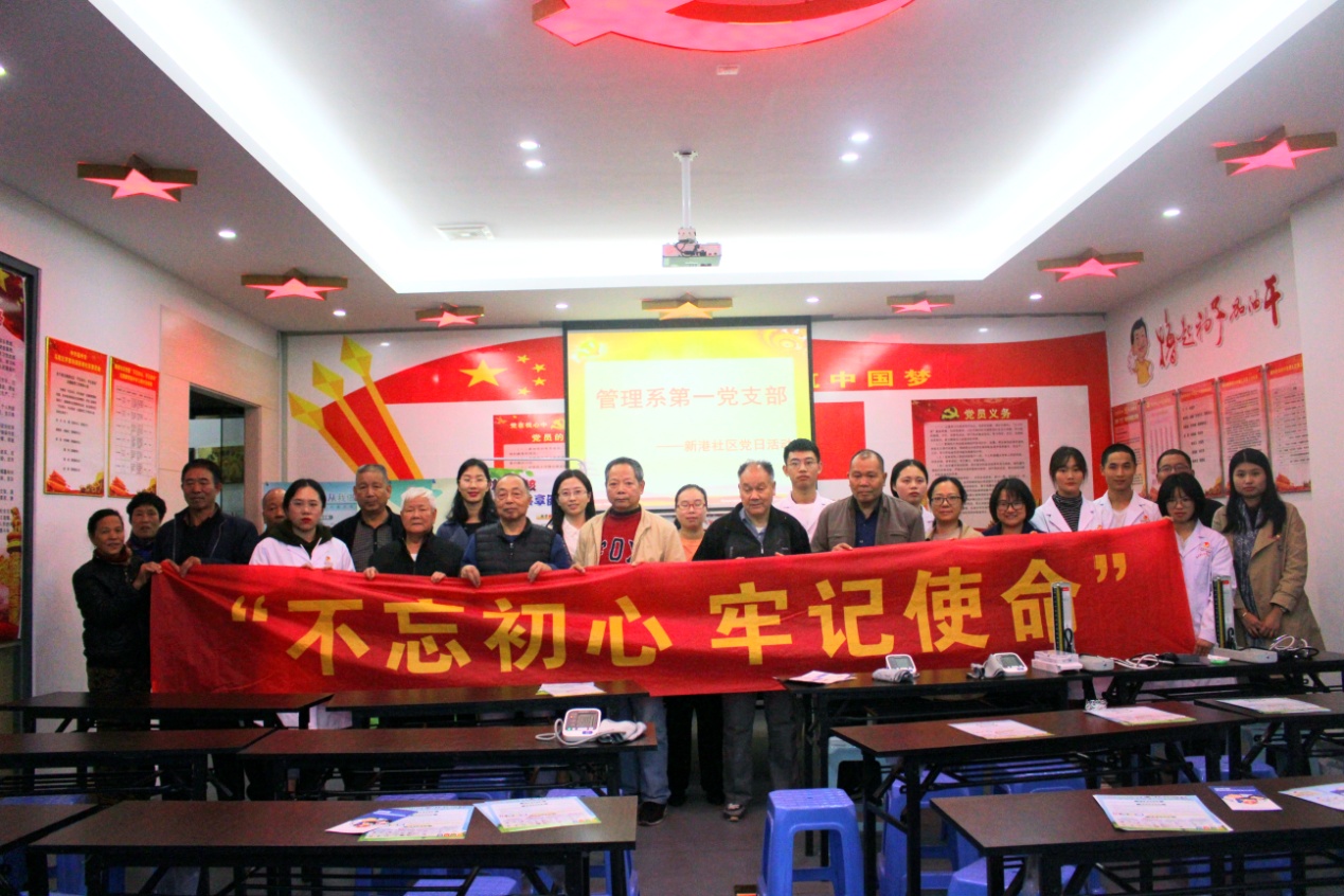 為貫徹落實“不忘初心、牢記使命”主題教育工作的部署要求,響應2019年全民終身學習活動周的精神,引導師生黨員將理論學習和社會服務緊密結合,增強使命意識和責任擔當,推動全民終身學習,助力基層社區(qū)“健康中國”建設,2019年11月28日下午,管理系第一黨支部副書記、預防醫(yī)學教研室主任揭金花帶領支部教師黨員及部分學生黨員、入黨積極分子赴馬尾區(qū)羅星街道新港社區(qū)開展“志愿服務社區(qū)行”主題黨日活動。