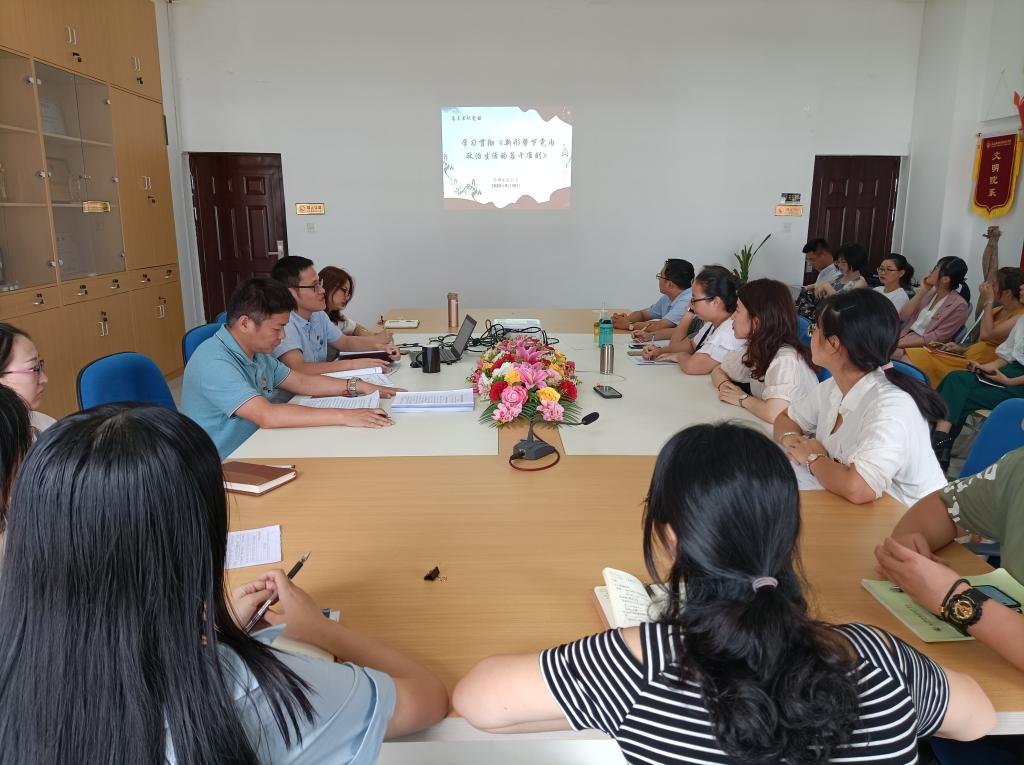 2020年9月10日下午,管理系黨總支黃曦書記講授題為“學(xué)習(xí)貫徹《關(guān)于新形勢下黨內(nèi)政治生活的若干準(zhǔn)則》”專題黨課,管理系全體黨員參加學(xué)習(xí)。