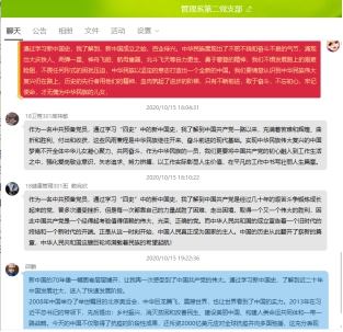 2020年10月15日,管理系第二黨支部全體黨員利用網(wǎng)絡(luò)資源學(xué)習(xí)四史中的《新中國史》。學(xué)習(xí)完畢,黨員們紛紛發(fā)表自己的心得體會。