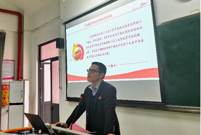 12月15日中午,在教學(xué)樓309,健康管理系黨總支書記黃曦書記為健康管理系第七期業(yè)余分黨校的126名學(xué)員宣講黨的十九屆五中全會(huì)精神。