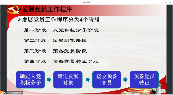 為使入黨積極分子更加了解中國(guó)共產(chǎn)黨黨員發(fā)展流程和培養(yǎng)考察的內(nèi)容,端正入黨動(dòng)機(jī),2022年1月17日晚,健康管理系業(yè)余分黨校第九期培訓(xùn)班暨青馬工程培訓(xùn)班第三課在線上舉行,學(xué)生黨員、入黨積極分子共100多人參加線上此次講座。本次授課由健康管理系專職組織員許曉湖老師主講,為同學(xué)們帶來(lái)了一次精彩生動(dòng)的黨課。