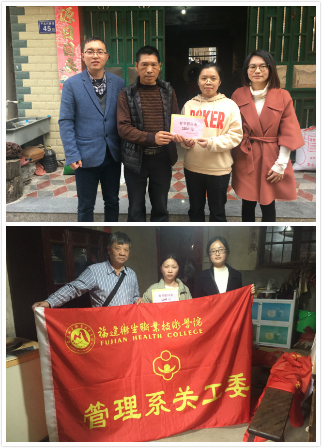 為貫徹落實(shí)高校家庭經(jīng)濟(jì)困難學(xué)生資助政策,關(guān)心貧困大學(xué)生的成長(zhǎng)與發(fā)展。1月26-27日,管理系組織關(guān)工委領(lǐng)導(dǎo)、教師代表、輔導(dǎo)員赴閩侯縣洋里鄉(xiāng),漳州市華安縣開展“迎新春,送溫暖”慰問(wèn)貧困生活動(dòng),為貧困學(xué)生家庭送上慰問(wèn)金和慰問(wèn)品,以及節(jié)日的祝福。讓貧困學(xué)生和家長(zhǎng)感受來(lái)自衛(wèi)職院大家庭的溫暖。