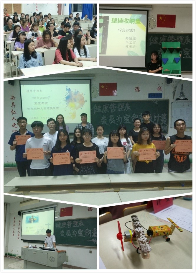 為響應(yīng)黨的十九大關(guān)于大力推進(jìn)生態(tài)文明和美麗中國(guó)建設(shè)的號(hào)召,增強(qiáng)我系學(xué)生的環(huán)保意識(shí)和參與熱情,展現(xiàn)當(dāng)代青年學(xué)生風(fēng)采,同時(shí)促進(jìn)節(jié)能減排,建設(shè)和諧文明校園,2018年5月20日由健康管理系學(xué)生會(huì)勞動(dòng)部和學(xué)習(xí)部聯(lián)合主辦的“DIY 變廢為寶”環(huán)保創(chuàng)意設(shè)計(jì)總決賽在教學(xué)樓314教順利舉行。系團(tuán)總支副書(shū)記馮瑞華老師和16級(jí)團(tuán)學(xué)干部出席此次活動(dòng)。