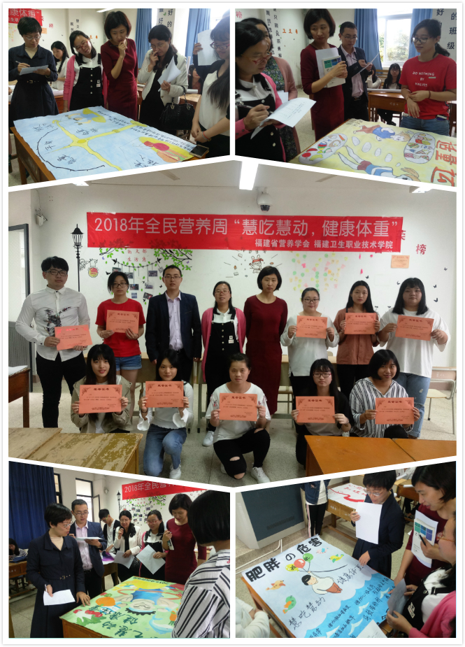 為進(jìn)一步踐行落實黨的十九大精神,響應(yīng)2018年全民營養(yǎng)周主題。2018年5月3日,健康管理系黨總支聯(lián)合學(xué)生會生活部在教學(xué)樓204成功舉辦“慧吃慧動 健康體重”海報繪畫大賽。大賽邀請了我系醫(yī)學(xué)營養(yǎng)專業(yè)帶頭人徐軼彥老師、醫(yī)學(xué)營養(yǎng)教研室主任吳晶老師、預(yù)防醫(yī)學(xué)專業(yè)帶頭人賈麗娜老師、預(yù)防醫(yī)學(xué)教研室主任揭金花老師、醫(yī)學(xué)營養(yǎng)教研室蔡丹鳳老師、王國浩老師擔(dān)任本次比賽的評委。