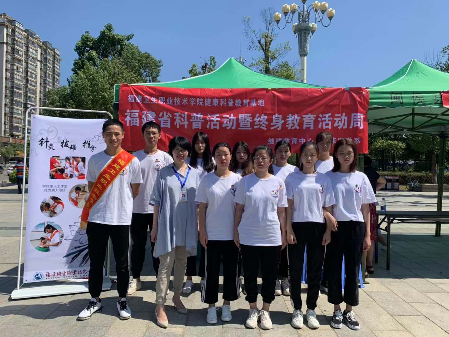 為做好2019年“9·28終身教育活動日”暨全民終身學(xué)習(xí)活動周相關(guān)活動,推動全民終身學(xué)習(xí),加快建設(shè)學(xué)習(xí)強(qiáng)國,2019年9月17日上午,在福建衛(wèi)生職業(yè)技術(shù)學(xué)院健康管理系第一黨支部教師黨員的組織帶領(lǐng)下,18中醫(yī)養(yǎng)生保健301班歐陽嘉偉、唐思思等10位同學(xué)赴閩都民俗園參加主題為“禮贊新時代,智慧新生活”閩侯縣主場活動。