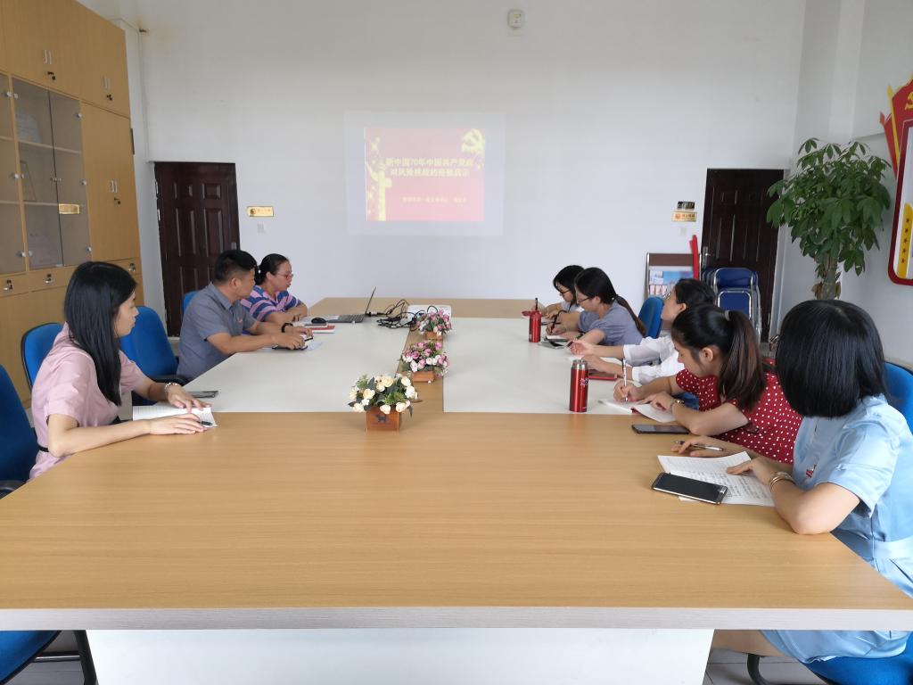10月8日中午,管理系第一黨支部書記揭金花開展題為“新中國70年中國共產黨應對風險挑戰(zhàn)的經驗啟示 ”的專題黨課,管理系第一黨支部全體黨員參加會議。