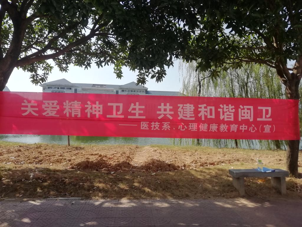 為進(jìn)一步發(fā)動(dòng)全院師生關(guān)注心理健康,關(guān)注精神健康,以己之力建設(shè)和諧校園,在2019年10月10日,第28個(gè)世界精神衛(wèi)生日來臨之際,由心理健康教育中心主辦和各個(gè)系部協(xié)辦的以“心理健康社會(huì)和諧,我行動(dòng)”為主題的宣傳活動(dòng)在福建衛(wèi)生職業(yè)技術(shù)學(xué)院舉行。此次活動(dòng)是心理健康教育中心終身教育系列活動(dòng)之一。