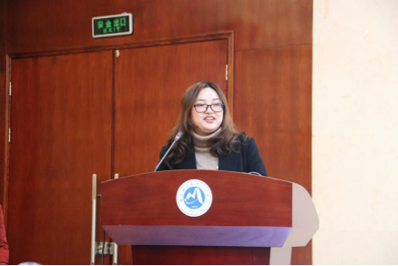 護理系輔導員鄭梅欽老師代表獲獎老師發(fā)表感言,并匯報護理系二級心理輔導站的工作情況及成效。