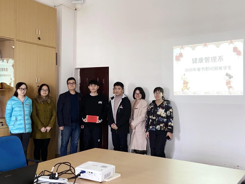 在新春佳節(jié)來臨之際,為把黨和國家對家庭經(jīng)濟(jì)困難學(xué)生的關(guān)懷落到實(shí)處,幫助貧困同學(xué)解決在學(xué)習(xí)、生活上的困擾,把學(xué)校的關(guān)懷與溫暖、老師的關(guān)心與幫助送到貧困同學(xué)的心坎上。2020年1月13日,管理系在圖書館506會(huì)議室舉辦了2020年春節(jié)慰問貧困學(xué)生座談會(huì),管理系黨總支書記艾松軍、管理系主任莊海林、管理系專職組織員張?jiān)葡?、管理系辦公室主任李淼淼、管理系教學(xué)秘書樓燁、輔導(dǎo)員李芳琴與19中醫(yī)養(yǎng)生保健301貧困生何順來同學(xué)參加座談會(huì)。