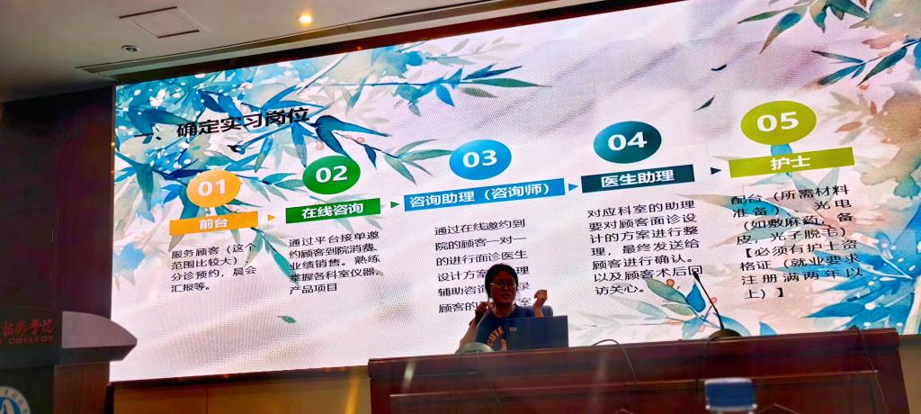 為深入貫徹實施福建省大學生就業(yè)引航計劃,幫助學生盡快立足實際、找準定位,轉(zhuǎn)換角色,更好適應崗位需求,做好未來職業(yè)發(fā)展規(guī)劃,樹立正確的擇業(yè)觀和就業(yè)觀,提升就業(yè)競爭力,6月17日,醫(yī)學美容技術專業(yè)教研室聯(lián)合團總支、學生會開展大學生就業(yè)引航計劃系列活動,為提升學生的職業(yè)素養(yǎng)和綜合能力注入新動力。