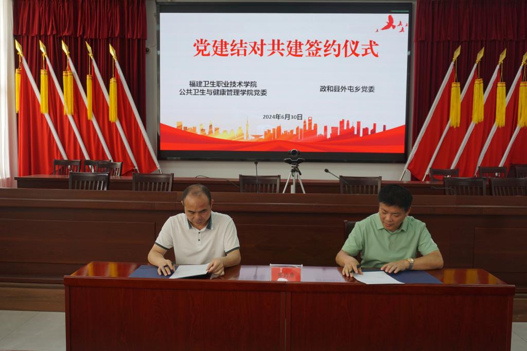 為創(chuàng)新基層黨建工作載體,發(fā)揮黨建引領(lǐng)作用,發(fā)揮資源優(yōu)勢(shì)互補(bǔ),通過(guò)校地共建活動(dòng)平臺(tái),增進(jìn)交流。公共衛(wèi)生與健康管理學(xué)院與政和縣疾病預(yù)防控制中心黨支部、政和縣外屯鄉(xiāng)黨委開(kāi)展黨建結(jié)對(duì)共建儀式。