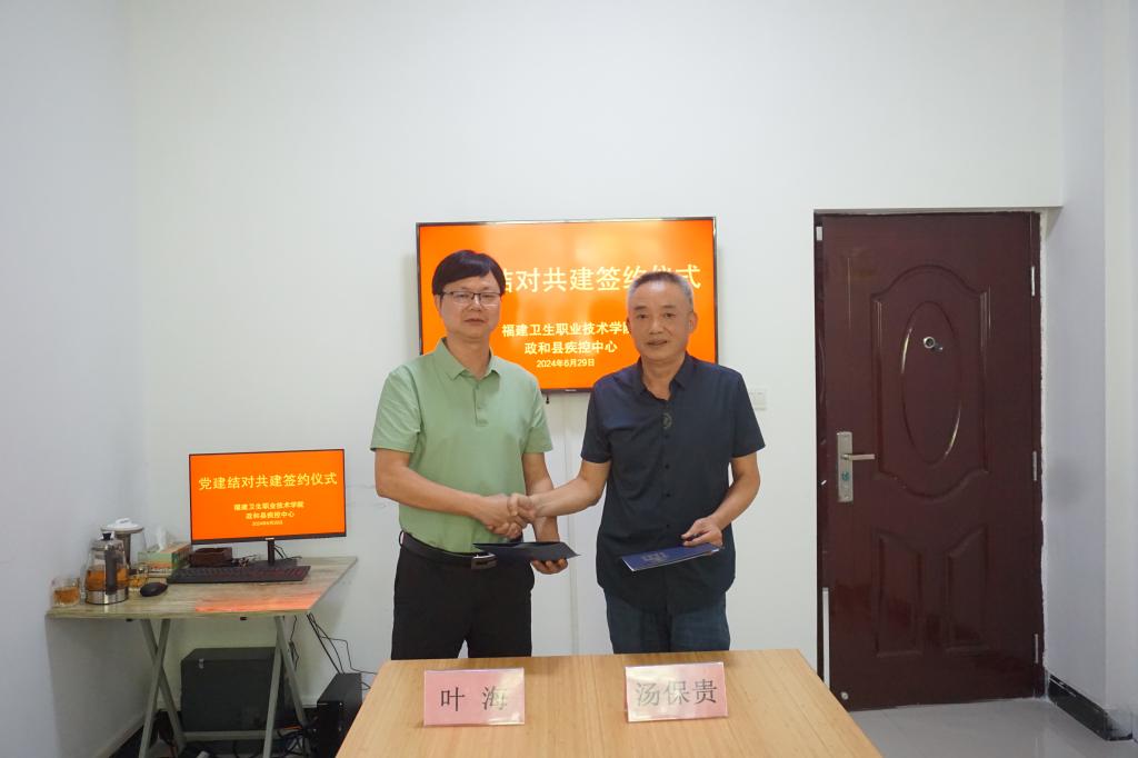 6月29日,公共衛(wèi)生與健康管理學(xué)院黨委與政和縣疾控中心黨支部黨建結(jié)對(duì)共建簽約儀式在縣疾控中心會(huì)議室舉行。縣疾控中心主任陳財(cái)、黨支部書(shū)記湯保貴、學(xué)院黨委書(shū)記葉海、院長(zhǎng)莊海林、專職組織員許曉湖等參與活動(dòng)。