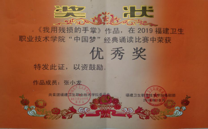 根據(jù)《教育部等八部門關(guān)于開展第22屆全國推廣普通話宣傳周活動的通知》(教語用函〔2019〕3號)的精神,為了增強全校師生的語言規(guī)范意識和推廣普通話的參與意識,營造良好的語言環(huán)境,推進我校語言文字工作,2019年9月16日-22日我校開展了題為“普通話誦七十周年華誕,規(guī)范字書愛國情懷”的宣傳周活動。在“中國夢”經(jīng)典誦讀比賽中我系18美容302班廖飛同學榮獲一等獎、19級預(yù)防302班張小龍榮獲優(yōu)秀獎。