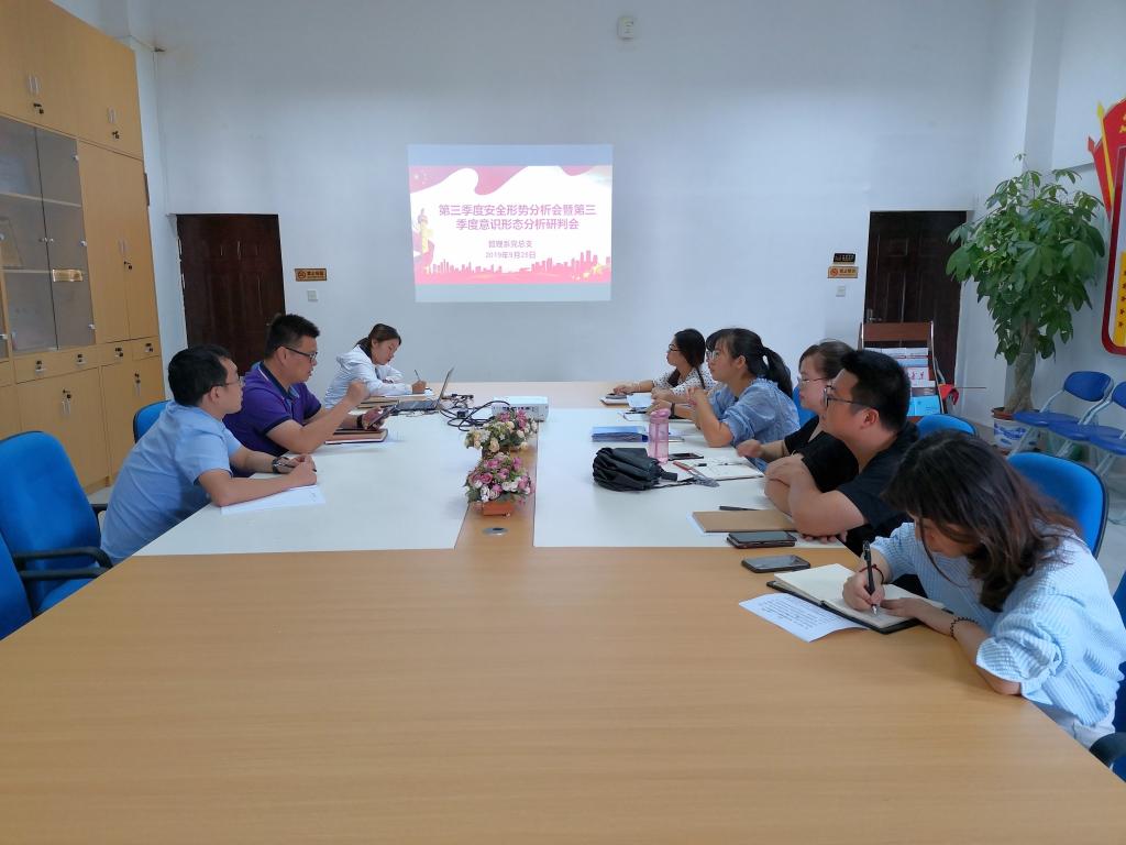 為深入研究、分析當(dāng)前安全形勢(shì)及意識(shí)形態(tài)工作中存在的問題,及時(shí)總結(jié)2019第三季安全工作與意識(shí)形態(tài)工作情況,9月25日上午,管理系黨總支召開第三季度安全形勢(shì)分析會(huì)暨第三季度意識(shí)形態(tài)分析研判會(huì),會(huì)議由管理系黨總支書記艾松軍主持。