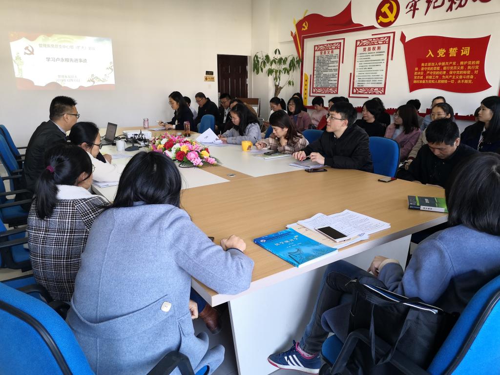 12月12日下午,管理系黨總支召開中心組學(xué)習(xí)(擴大)會議,學(xué)習(xí)“時代楷?!北R永根先進事跡,總結(jié)學(xué)習(xí)《中國共產(chǎn)黨宣傳工作條例》。會議由管理系黨總支書記艾松軍同志主持。