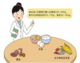 防疫期間,每天的膳食應(yīng)有谷薯類、蔬菜水果類、畜禽魚蛋奶類、大豆堅(jiān)果類等食物。注意選擇全谷類、雜豆類和薯類。食物多樣是關(guān)鍵,谷類為主很重要。