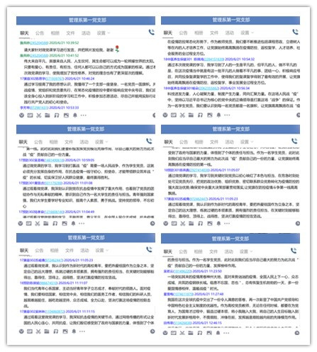 2020年6月19日上午9點,管理系第一黨支部全體黨員在線觀看“黨旗飄揚筑牢紅色防火墻”高校黨組織戰(zhàn)“疫”示范微黨課,并在線交流觀看體會。