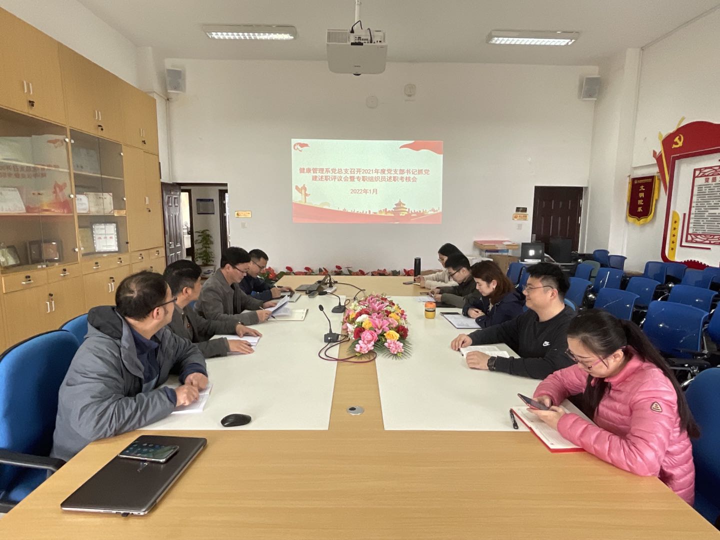 2022年1月18日,健康管理系黨總支在系部會(huì)議室召開(kāi)2021年度黨支部書(shū)記抓黨建述職評(píng)議會(huì)和專(zhuān)職組織員述職考核會(huì),健康管理系黨總支委員、系領(lǐng)導(dǎo)、支部書(shū)記、專(zhuān)職組織員以及教師代表參與會(huì)議,會(huì)議由健康管理系黨總支書(shū)記葉海主持。