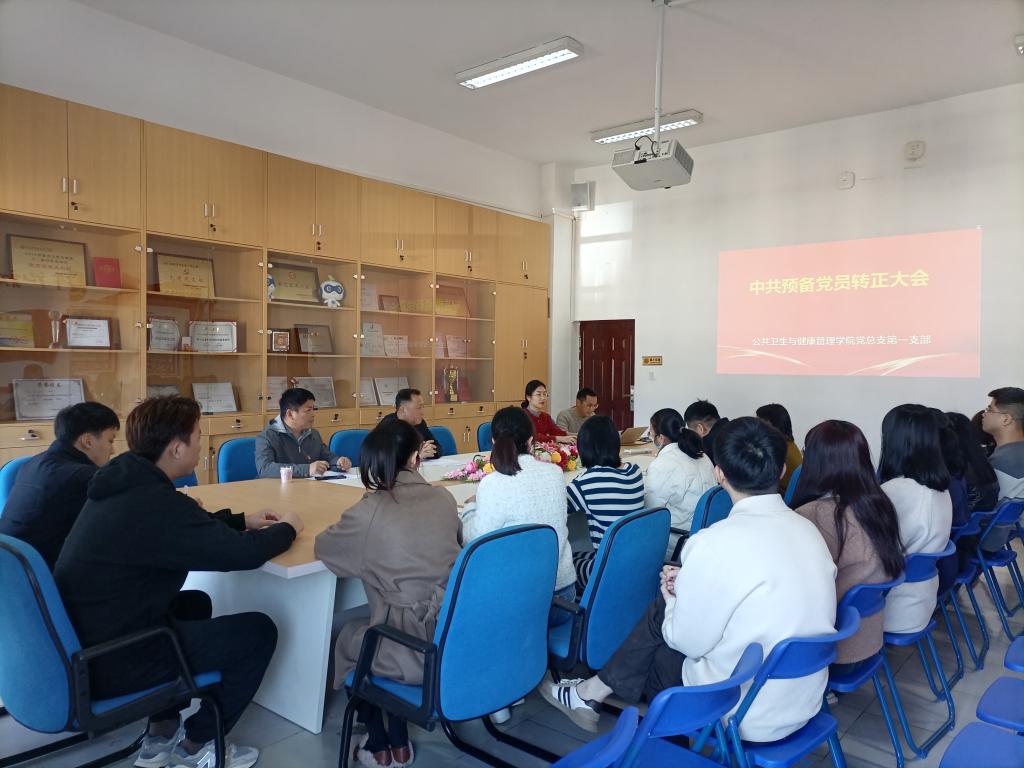 2023年12 月25日,公共衛(wèi)生與健康管理學(xué)院黨總支第一支部舉行預(yù)備黨員轉(zhuǎn)正大會,大會討論并審議預(yù)備黨員李其鏗同志轉(zhuǎn)為正式黨員問題,支部共有黨員20名,正式黨員19人,實(shí)到正式黨員15名。